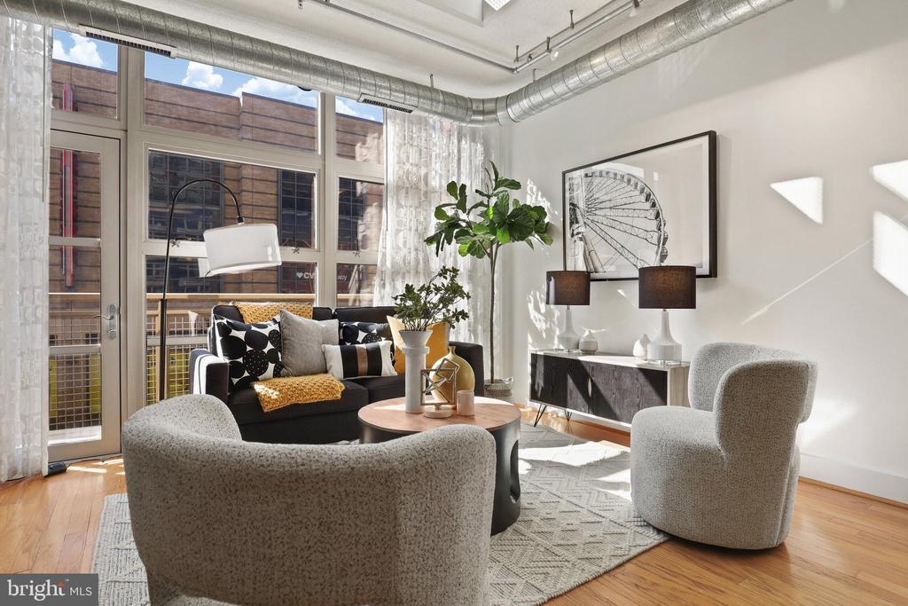 Be sure to check out our virtual tour of this gorgeous and open 2-level 2BD/2BA with rare 2 parking spots in the award winning Kenyon Square Condominiums. As you enter you will grin from ear to ear from the amazing amount of natural sunlight that's ushered in from the floor-to-ceiling windows. Featuring an open layout, massive double-height living area, chef's kitchen and breakfast bar, it s the perfect space for entertaining and relaxation. The home is a sophisticated retreat in the heart of the city, 20ft +ceilings and wood flooring. As you progress the floating stairs you'll enjoy a modern office area, secondary living room, Juliet balcony and the gorgeous loft style owner's suite. The suite is blessed with tons of space, massive walk in closet with premium closet system and amazing modern barn door with full size mirror. Washer/dryer in unit, 2 covered parking spots next to the elevator, and storage unit to complete this amazing offering. Kenyon Square features an elegant lobby, 24/7 concierge, library, lounge with plasma TV, full kitchen and secondary entrance/lobby at Columbia Heights Metro. It also features an award winning rooftop terrace with outdoor grill, green lawn, and sundeck. The roofdeck is spectacular with 360 degree panoramic views of Washington DC. Residents also enjoy the quiet, landscaped courtyard and patio. First-floor retail includes Starbucks, D vines Fine Wine and Beer, FedEx Kinko s and Cava. A gourmet Giant is one block away. Located across from the DC USA retail center with TARGET and Washington Sports Club. Just a short walk to Adams Morgan, Mt. Pleasant, and U Street