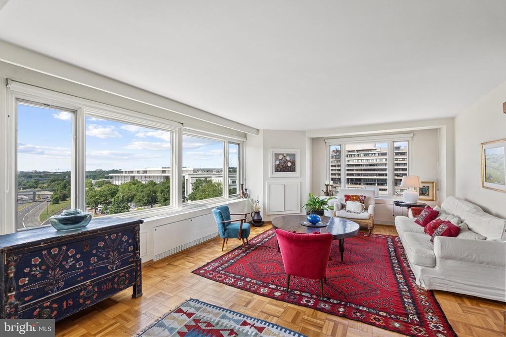 Rare 3 bedroom 2 bath in the heart of Foggy Bottom! Spectacular, sunny and spacious corner apartment w 2 sides of huge picture windows and light overlooking the Potomac River on the top floor of a prime building with many amenities. 1612 sq ft of living space. Large picture windows provide open and fabulous views. Bright and spacious dining, living and bedrooms. Hardwood floors Custom built-ins and tons of closets offer plenty of storage space. Well managed building - Amenities include 24 hr concierge desk, exercise room, community room, bike room , roof terrace greenery and sweeping views, common laundry. Great walk score! Prime location Walk to Foggy Bottom Metro(blue , orange and silver lines) GWU, Kennedy Center, Georgetown waterfront. Near Whole Foods and Trader Joes, restaurants and conveniences. Close to Dupont Circle, State Dept., IMF, World Bank. Utilities included in rent. Rental lease term one year to five years with renewals after each year subject to cooperative approval.