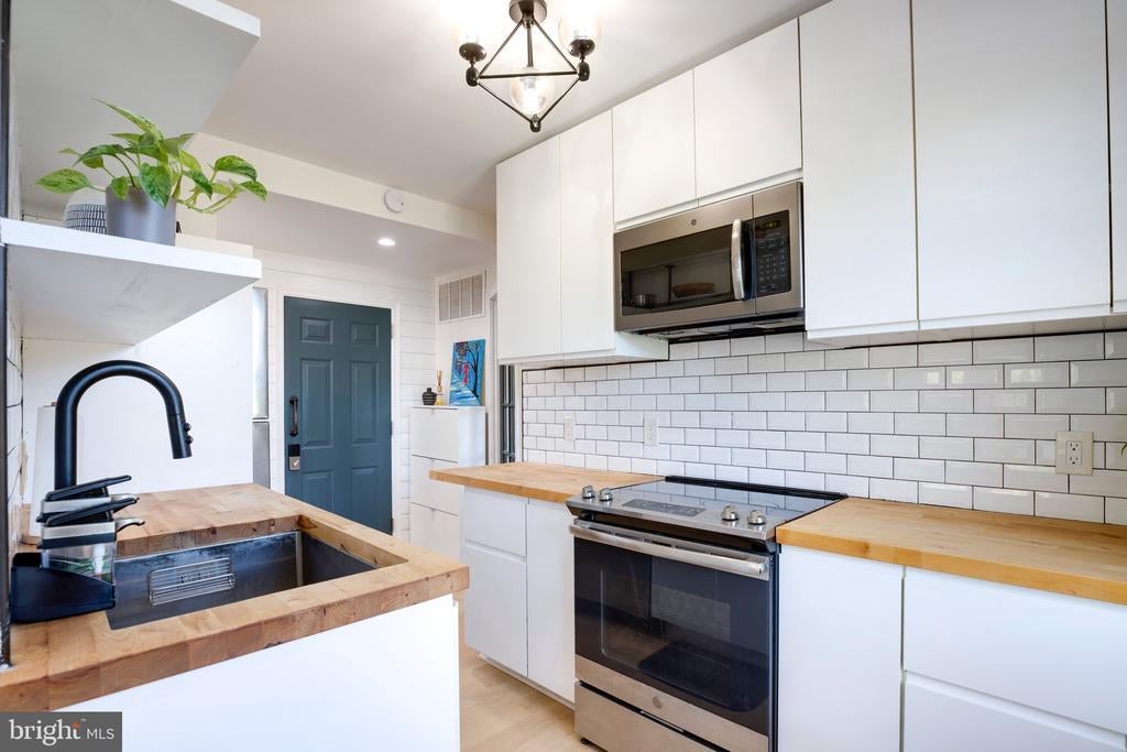 Beautifully remodeled corner-unit condo in DC’s Edgewood neighborhood featuring wide plank wood floors, recessed lighting, and abundant natural light. Spacious living/dining area opens to a sleek kitchen with high-end stainless appliances, custom cabinetry, butcher block counters, and tile backsplash. Primary bedroom offers custom doors and large closet with shelving; second bedroom/office off kitchen. Stunning bath with Carrera marble and shiplap. Includes Bosch washer/dryer (rare for these units!), private hot water tank (the rest of the building shares water), assigned parking space, and HVAC (2018). Water is included in the condo fee. Capital Bikeshare station is located outside. Blocks away is Monroe Street Market (Busboys & Poets, Brookland Pint, other galleries and local shops). Convenient to Rhode Island Ave & Brookland/CUA Metro. Upcoming Bryant Street development is nearby for additional dining, retail, and entertainment options!