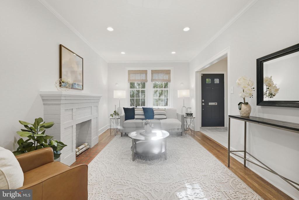 Located on the cutest block in Glover Park this spacious, sun drenched Colonial Row home offers refreshed original features with updated modern touches, making this 4 bedroom and 2 bathroom home a rare find. The beautiful front porch welcomes you into the sun-filled main level. This charming home features original, gleaming hardwood floors that flow throughout, recently renovated kitchen includes gorgeous countertops, a large peninsula, white cabinetry, all of which open to the dining room. Bonus room off the back of the home features a closet and barn door, offering the possibility of an office/family room/guest room -- whatever you choose! This bonus room connects to a second outdoor space that is perfect for relaxing and/or entertaining. The upper level features 4 bedrooms with original transom windows and a beautiful hall bathroom with skylight. Washer/dryer on 2nd level and 2 cedar closets! The lower level is finished with a large family room/bedroom, 2nd laundry area with storage, full bath and full kitchenette, perfect for an office , in-law suite, au-pair or an additional family room. Home includes an attached garage and driveway for additional parking. Roof and HVAC installed 2020, recently serviced. Other improvements include: New boiler, January 2023 New electric panel, March 2023 New windows, February 2024 Mini split ac/heat units in back room and second floor guest room, spring 2024 New washer and dryer, April 2021 New fridge, July 2022 New siding in the back, spring 2024 A lovely park is down the street, Stoddert Elementary is just blocks away, and there are a multitude of fabulous restaurants, gyms, coffee shops, Trader Joe's, Whole Foods, and everything else you need just around the corner. Walking distance to Cathedral Commons and Georgetown.