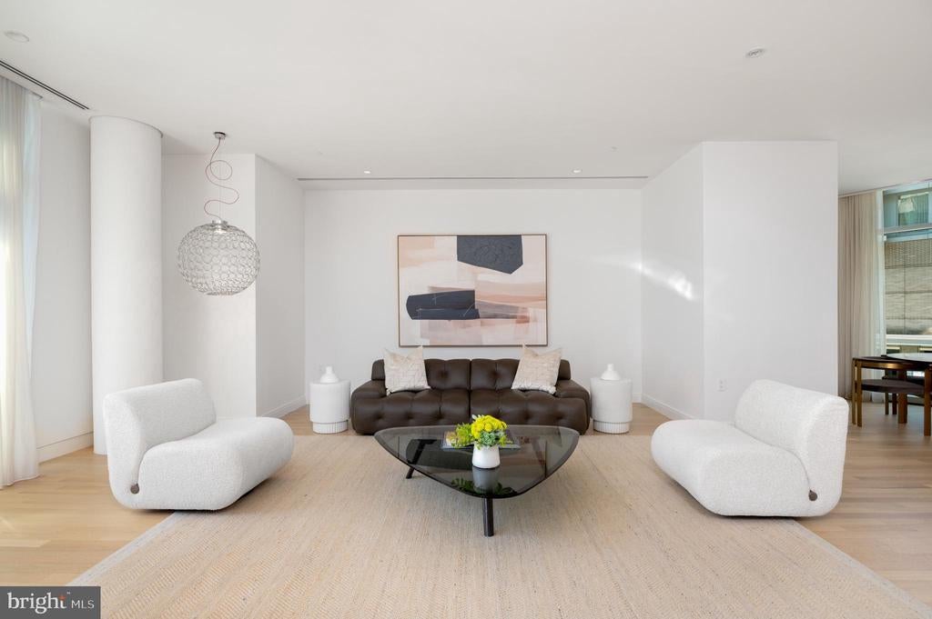 A rare opportunity to own a 3-bedroom condo in the acclaimed 22 West Condominium in DC’s sought-after West End! This expansive residence offers 2,143 interior SF, 3 Bed, 3 Baths, dramatic scale with an inviting entry foyer and a spectacular living room framed by two walls (eastern and western exposure!) of floor-to-ceiling windows overlooking tree lined 22nd St and New Hampshire Ave. The chef’s kitchen showcases Poggenpohl cabinetry, granite counters, and Sub-Zero and Bosch appliances.Recent upgrades include modern ceiling lighting, new bath flooring, a sliding door in the primary bath, motorized shades and curtains, and efficient dual HVAC systems. A custom Italian glass sliding wall by Ramadesio creates a flexible den/office (3rd Br) with privacy and light, while interiors are enhanced with recently refinished hardwood floors, and an accent column with a striking French mural. Two side-by-side garage spaces and a large storage unit convey.