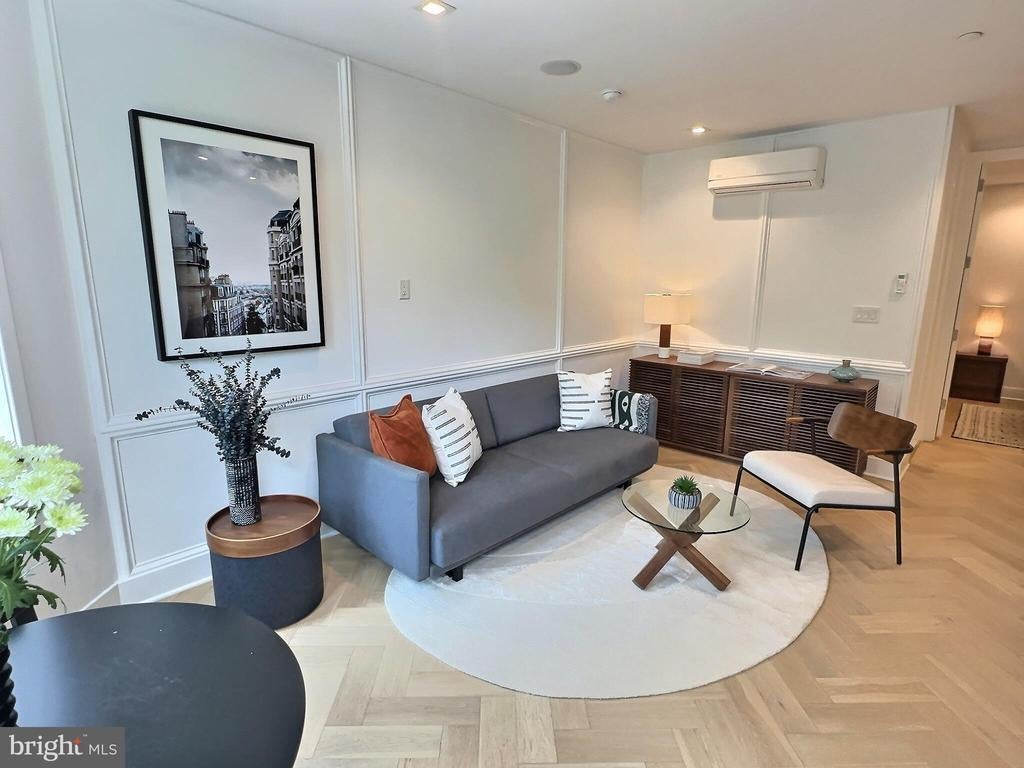 Enjoy this sophisticated and thoughtfully designed 1BR in the heart of Dupont Circle. Experience elevated city living in this impeccably appointed one-bedroom residence, ideally located in sought-after Dupont Circle. The thoughtfully designed layout offers distinct spaces for living, dining, and entertaining and ample room for a dining table. Interior finishes showcase custom wall panel moldings, hand-cut white oak flooring in an elegant herringbone pattern, and meticulously crafted, custom-stained millwork. The luxurious bath features heated floors, oversized Italian porcelain tile, and a custom niche installation. Additional highlights include a state-of-the-art home automation system and integrated speaker system throughout. A perfect blend of style, comfort, and modern convenience.