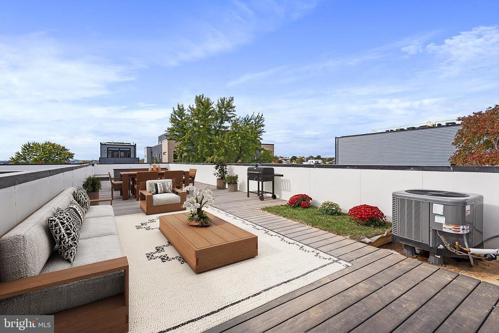 Located in bustling NE DC, in Langston-Carver, where H St Corridor, Union Market and Ivy City are all easily accessible, you can now add this boutique 8-unit residence to the mix. 17th Place Flats has an expansive rooftop, the length of the whole building, with 360 degree views of DC’s skyline, a clear shot of the Washington Monument, and spectacular sunsets. In addition, each unit has its own semi-private outdoor space. Step inside the penthouse and you have the spacious living & dining area which is graced by a wall of windows that offer ample natural light. The stunning white oak wide plank flooring create an inviting and warm atmosphere throughout the home. The chic corner kitchen has quartz countertops, white subway tile backsplash, white shaker cabinetry with black metal hardware, and gas cooking. The brand-new SS appliances offer functionality and style. One of the two rooms can fit a queen sized bed or double as an office. The master bedroom ensuite is at the other end, full of natural light, a deep closet, full bath and its own balcony. Both full baths are modern with tilework in grey and white hues and sleek black trim. Washer and dryer in every unit. The unit has the Vivent smart home security system installed which conveys. 1 parking spot conveys. The low condo fees of $172/mo include trash, water, rooftop access, and the communal green space in the rear, perfect for grilling and picnics. Seller will provide a 1 year comprehensive home warranty along with a 2-year structural warranty! Pet & Investor Friendly! This home qualifies for a 10k grant for buyers with certain lenders, HPAP and more! VA& FHA Approved!