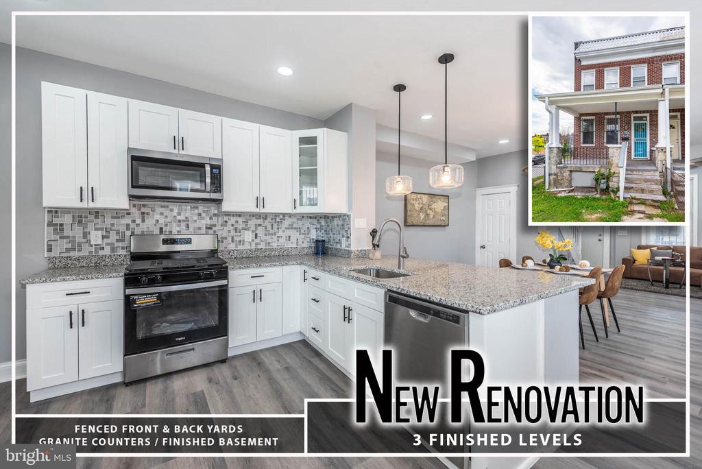 Stunning Renovated End-of-Group Townhome with Welcoming Front Porch! This beautifully updated home offers three fully finished levels of stylish and functional living space. Step inside to an inviting open-concept main level featuring warm wood laminate flooring throughout, perfect for entertaining or everyday living. The spacious living room is anchored by a sleek electric fireplace, adding cozy ambiance and modern flair. The adjacent dining area flows seamlessly into a beautifully updated kitchen with gleaming granite countertops, stainless steel appliances, and ample cabinetry—ideal for any home chef. Upstairs, you’ll find three generously sized bedrooms filled with natural light and a full hall bathroom with timeless finishes. The finished lower level expands your living space with a large family room, a dedicated office area, and a second full bath—perfect for guests, a home gym, or remote work. Outdoor living is just as appealing with a private, fully fenced backyard featuring brand-new wood fencing—perfect for relaxing, gardening, or entertaining. A fenced front yard adds charm and curb appeal to this already impressive home. This move-in-ready gem combines classic comfort with thoughtful updates in every corner.