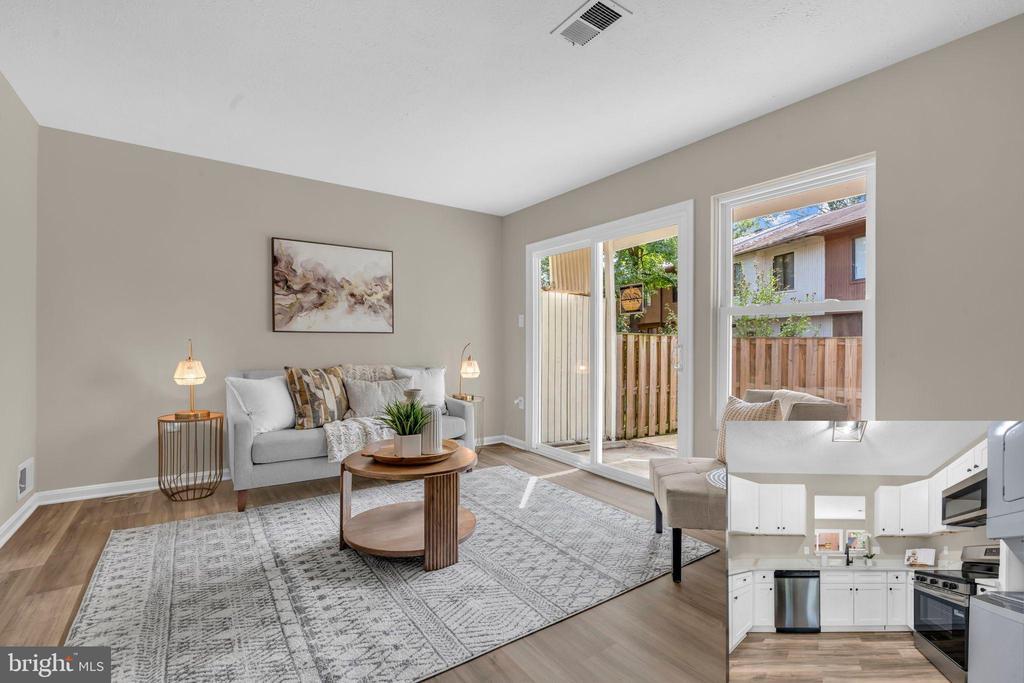Fully renovated and move-in ready! This beautiful two-level townhome offers modern updates throughout. Step inside to find an all-new kitchen featuring quartz countertops, stainless steel appliances—including an oversized refrigerator with water and ice, electric stove, built-in microwave, dishwasher, disposal, and deep stainless-steel sink—plus new cabinets, lighting, and flooring. A washer and dryer are conveniently located in the kitchen. The main level boasts new luxury vinyl plank flooring, all new windows and sliding glass doors, updated light fixtures, and a freshly renovated half bath. Enjoy the dining area with access to a new deck, as well as a spacious living room with a slate-surround fireplace, sliding glass door to the fenced backyard, concrete patio, new decking, and storage shed. Upstairs, you’ll find 3 bedrooms and a fully renovated hall bath with designer vanity, modern lighting, mirror, and stylish tile tub/shower surround. The owner’s suite includes two closets and private access to the bath. Additional highlights include six-panel doors throughout, new carpeting, an electric heat pump, and a brand-new roof installed in August 2025. This townhome combines style, comfort, and peace of mind with top-to-bottom renovations—truly a must-see!