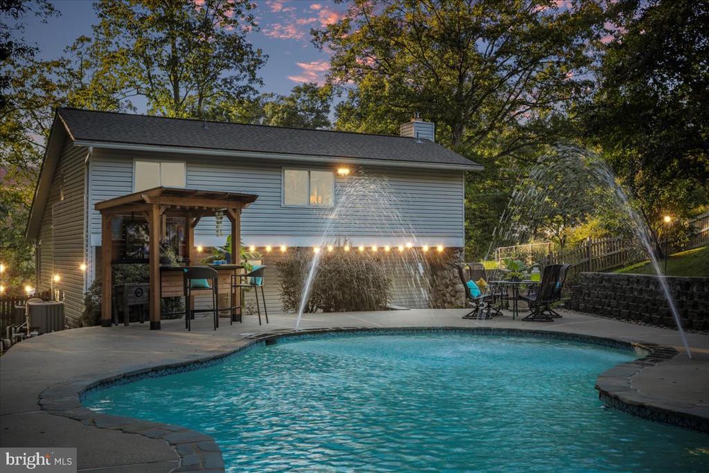 Looking for a great home that is not your typical cookie cutter style home? If so look no further - this is the home for you! This home is situated on just under an acre offering a large front and rear yard. The backyard is your private oasis including a lower patio, upper patio with covered bar, inground heated salt water pool, partially fenced yard and additional yard beyond the fence line with a storage shed and mature trees for privacy. Inside the home there are plenty of upgrades and a great layout. The formal living room offers vaulted beamed ceilings and hardwood flooring, the family room is situated off of the kitchen and has a cozy wood burning fireplace. The kitchen has a spacious breakfast bar for casual meals. Should you wish to have a more formal dining you can always step into the formal dining room located right off of the kitchen. The upper level offers an updated primary suite with an updated private bathroom with a walk-in shower. There are 2 additional bedrooms and an additional full bathroom on the upper level. The lower level of the home is where you will find your laundry area and a partially finished rec room or home gym. In addition the following items have been recently updated: roof replaced in 2021, hvac system replaced in 2020, water heater replaced in 2020, bathrooms remodeled in 2018. gutter guard added in 2019, new patio in 2019, fence and plantation shutters installed in 2018. This is one you will not want to miss!
