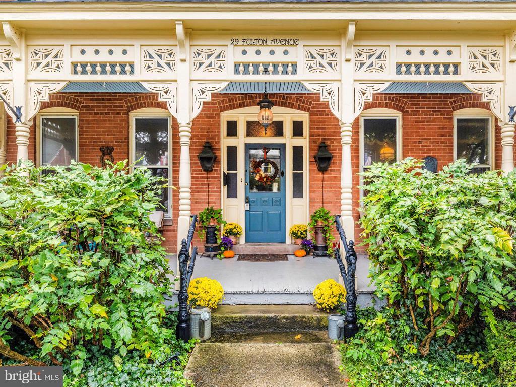 Discover timeless character and a rare offering in Walkersville at 29 Fulton Avenue. Built in 1900, this stately three-story brick Victorian has been lovingly restored over time, blending preserved architectural details with thoughtful modern updates for today’s lifestyle. The exterior walls, 3 bricks thick and crafted by Walkersville Brick & Tile Works stand as a testament to the lasting craftsmanship. Inside, more than 3,000 sq feet of finished living space is enhanced by soaring 10’+ ceilings, tall proportioned moldings, decorative crown details, heart pine hardwood floors, transom windows, and intricate ceiling medallions. Built-in display cabinetry, pocket doors, and even a decorative newel post cap that conceals a secret compartment remain beautifully intact. The grandeur of this home reveals itself the moment you enter, where original character immediately transports you to an era bygone. The dining room, perfect for large gatherings, features bay windows with plantation shutters, a wood-burning fireplace with an elaborate mantel, a tray ceiling with a ceiling medallion, and a statement chandelier. A true centerpiece of the home, the modernized kitchen boasts ten-foot pocket doors, a masonry wood-burning heater crafted from original bricks, soapstone counters, stainless steel appliances, and abundant maple cabinetry. The recent remodel provides beauty and functionality, offering plenty of space for cooking and entertaining. Access to the second staircase is shared between the kitchen and the family room. A bonus room off the kitchen has a 2nd wall oven and has been used as a butler's pantry room by the current owners. The family room centerpiece is the Barlett Hayward Latrobe stove, manufactured in Baltimore, Md, and modified for propane which adds warmth and a historical feel to the room. Other features are the surround sound access grates, secret storage areas, (2) ceiling medallions with ornate chandeliers, the second full bath with stained glass doors, and a claw-foot bathtub. The third staircase can be found in this room and is adorned with a custom iron handrail. A mud room with heated floors and floor-to-ceiling cabinetry serves as a second entry point to the home and flows into the family room. Cozy up with a book and watch the snow fall from the four-season room with floor-to-ceiling Eze-Breeze windows and a propane stove. Four bedrooms, a modern full bath, and laundry are all generously sized and full of natural light. The primary bedroom has a bay window with plantation shutters and direct access to the full bath. A rear bedroom has access to the third staircase, believed to be used by the house staff in the late 19th century. A walk-up attic with over 1,700 square feet of floored, fully insulated space provides endless possibilities for additional finished rooms. Outdoor living is equally inviting. A cozy side porch and a large covered front porch with intricate gingerbread trim provide the perfect backdrop for quiet mornings and unhurried evenings. A custom wrought iron border fence and handrail complements the home’s Victorian style, and is lined with fragrant red roses, creating a striking first impression. Gas lit front porch lamps frame the front entry and greet you with a warm, flickering light, while details like the original mail slot and intricate mechanical doorbell preserve the home’s historic charm. The roof is a combination of slate and asphalt and is equipped with half-round gutters and period lightning rods, while the large driveway leads to a darling carriage house adding function and character. Located in the heart of Walkersville, this home offers a lifestyle that blends community, convenience and charm. Walk to schools, the library, church, and restaurants. Opportunities like this are rare-a home rich with character, space, and history, ready for its next chapter. This isn’t just a place to live, but a place to grow, create lasting memories, and carry forward with pride.