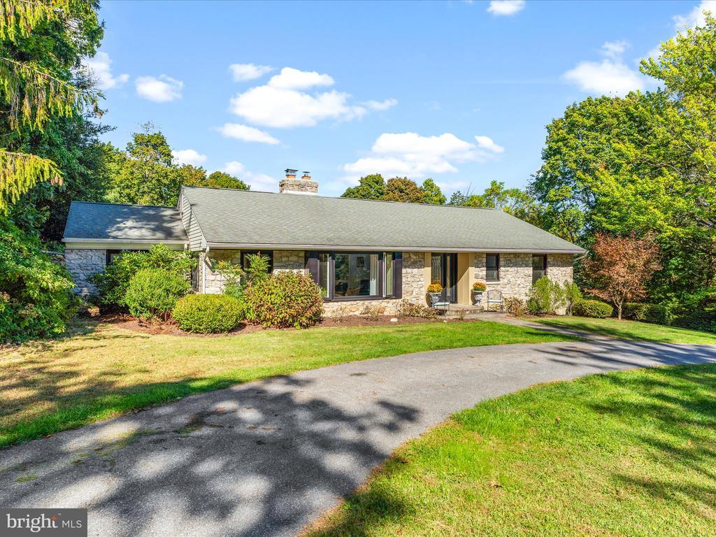This charming stone rancher is nestled on the Frederick County side of the mountains, tucked away on a serene half-acre lot, offering single-level living with warmth and character. Boasting over 2,500 square feet of living space, the home features three generously sized bedrooms, two and a half baths, and hardwood floors throughout. The inviting living room features a large picture window, wood-burning fireplace, and built-ins, while the dining room and kitchen, with granite countertops, provide a seamless flow for everyday living. Additional spaces include a spacious family room, a convenient powder room with laundry on the main level, a bright sunroom with skylights, and a versatile office that opens to the stone patio. Step outside to an entertainer’s paradise featuring a large pavilion with an outdoor kitchen, fireplace, and area for a hot tub—perfect for gatherings or peaceful evenings surrounded by nature. A two-car garage, ample parking, and an unfinished basement with additional storage complete the home. With newer windows, a wooded backdrop, this property perfectly blends mountain charm with modern comfort. *Additional .98 acre lot available for purchase* Don't miss your chance to make this home yours!