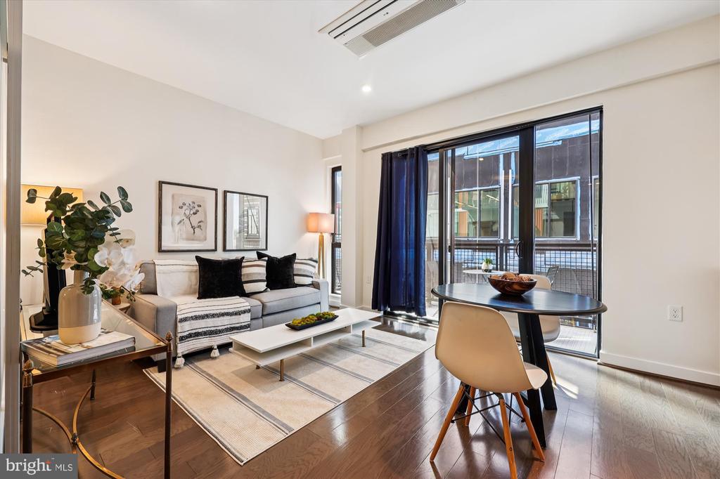 This modern 1-bedroom, 1-bathroom condo offers 460 square feet of beautifully designed living space. Built in 2016, the unit features wood flooring, quartz countertops, in-unit washer and dryer, balcony, and sleek stainless steel appliances. The location is unbeatable, just steps from the Silver Spring Metro Red Line and the upcoming Purple Line, making commuting a breeze. You'll also be only two blocks from the new Mom's Organic Market and directly across the street from the new Montgomery County Aquatic & Recreation Center, which boasts pickleball courts, three pools, hot tubs, and free fitness facilities for local residents. Additionally, you're just one block from Woodside Park, offering tennis courts, a basketball court, a playground, and picnic areas. Building amenities include a lobby/club room with a fireplace and free Wi-Fi, concierge services, a fitness room, separate bike storage, a sky lounge, and a roof deck with stunning western views of downtown Bethesda, the spires of the Mormon Temple, and breathtaking sunsets. An extra storage unit is included for added convenience. Don't miss out on this incredible opportunity!