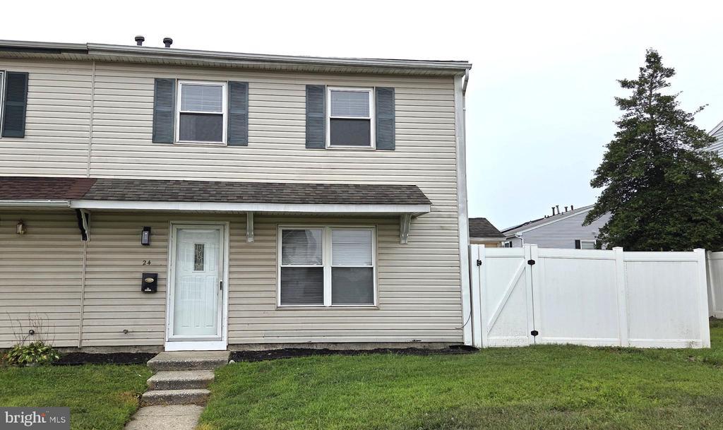 Welcome to 24 Lennox Court, a beautifully maintained 2-bedroom, 1-bath end-unit townhouse offering comfort, style, and value in the peaceful Lehigh Manor community. Inside, you’ll find a bright, open living space with tile flooring and sliding glass doors leading to your private fenced patio—perfect for relaxing or entertaining. The modern kitchen features granite countertops, tile backsplash, sleek appliances, and ample cabinetry, while the upstairs hosts two spacious bedrooms, a full bath with tiled tub/shower, and convenient laundry room. This home enjoys extra privacy, abundant natural light, and a larger outdoor feel. With central air, gas heat, and low HOA fees, it’s designed for low-maintenance living. Located just minutes from shopping, dining, parks, and major highways, it offers quick access to Philadelphia, the shore, and beyond. Whether you’re a first-time buyer, downsizing, or investing, 24 Lennox Court delivers turnkey living at an excellent value—schedule your showing today!