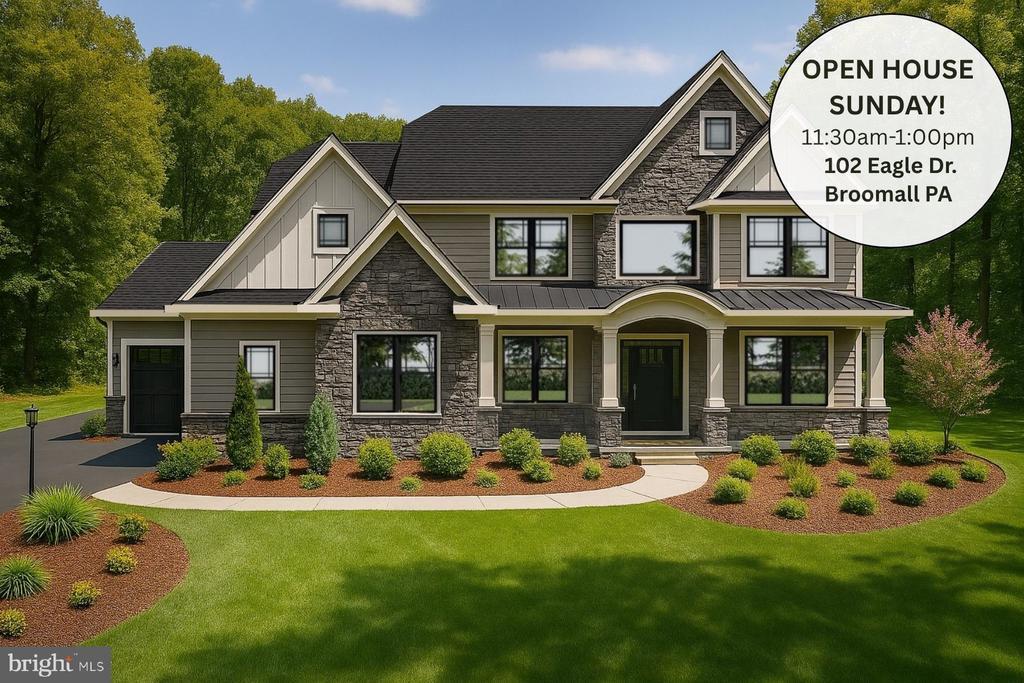 *****PLEASE NOTE DIFFERENT ADDRESS FOR OPEN HOUSE****** Unique opportunity to tour a completed Eddy Home 11:30am-1:00pm 103 Eagle Drive Broomall PA Oakwood by Eddy Homes – A Once-in-a-Lifetime Opportunity Set within the coveted Unionville–Chadds Ford School District—just minutes from the everyday conveniences you desire, this custom home sits on a 3.4-acre private estate offering both serenity and accessibility. Step into luxury with this stunning, modern craftsman-style floorplan! Enter to a grand two-story foyer that flows into a spacious and open first floor. An entertainer’s dream, this home boasts a bright and airy gourmet kitchen complete with a breakfast room, generous island, and butler’s pantry. The window-laden great room beams with natural light and features a beautiful gas fireplace. Visitors will enjoy the private first-floor guest suite with full bath and walk-in closet. The second-floor owner’s suite flows into a luxurious bathroom sanctuary and a generous walk-in closet. Touches of convenience and luxury on the second floor include 3 additional spacious bedrooms each with a walk-in closet, 2 full baths and a laundry room. Located just minutes from Kennett Square and Concordville, enjoy boutique shopping, top-rated dining, and year-round community events. With easy access to Route 202 and I-95, you’re a quick drive to Wilmington, DE, and only 30 miles from Center City Philadelphia. Nearby attractions include Longwood Gardens, local wineries, and premier golf courses. Don’t miss this extraordinary opportunity. Schedule your private site tour today and claim your dream before it’s gone! This is your last chance to own a custom Eddy Home in Oakwood—where exclusivity meets natural beauty.