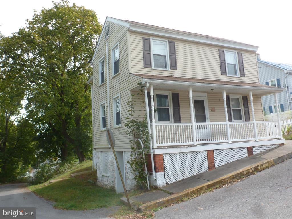 Say 'WHY RENT" ? Start building equity in a House to Call HOME! Replacement windows and choice to burn wood pellets for alternative, cozy heat, OR use Mini-Split for heat and air conditioning... rather than electric baseboard. 2nd floor heat and air conditioning is ducted from the Mini-Split attic unit. Cozy up to electric fireplace in Livingroom. Eat-in Kitchen and also formal Dining room or family room choice. Two open faced porches to relax and enjoy rear/side yard gardens. Level entry basement offers a finished den. Metal Roof. Extra Valley St wooded tri-angle lot offers off-street parking. $1,114.32 Taxes a Year.
