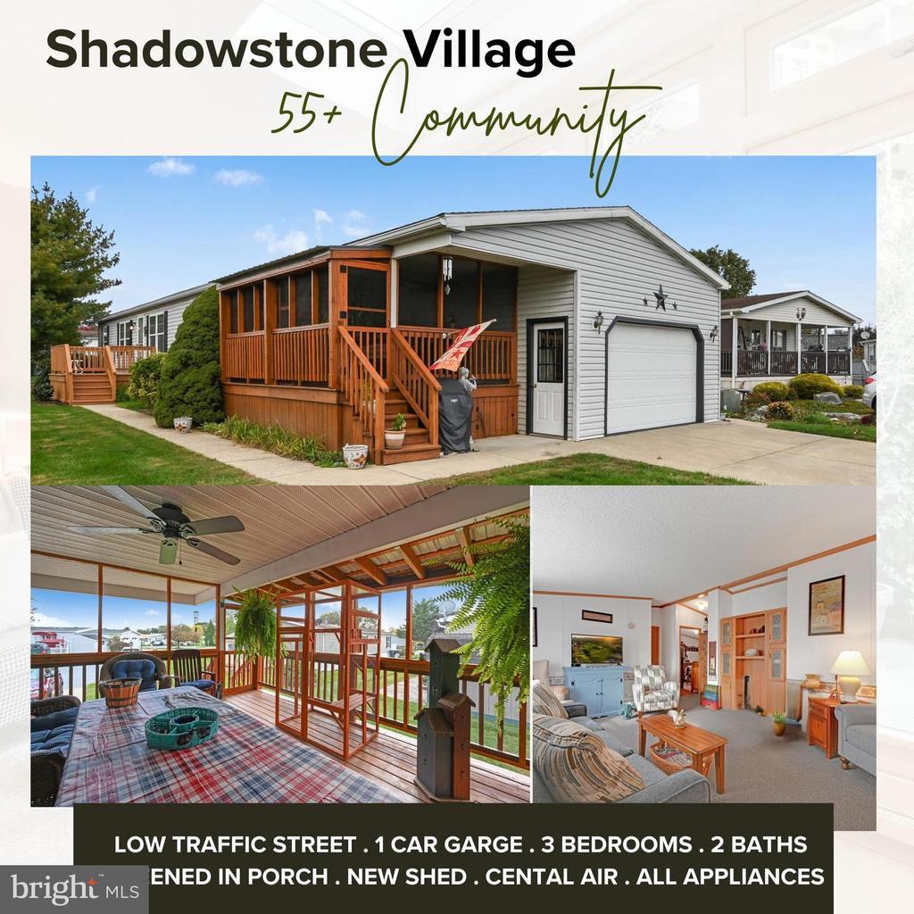 **Comfortable Living in Shadowstone Village – 55+ Community** Welcome to **Shadowstone Village**, a beautifully maintained 55+ community where comfort and convenience come together. This spacious **3-bedroom, 2-bath double wide** offers a bright, open layout designed for easy living. One of the standout features of this home is the **attached 1-car garage**, complete with **built-in shelving**—perfect for keeping everything organized. Inside, you’ll find a **kitchen with all appliances included**, an **island with breakfast bar**, and a cozy **breakfast area** just steps away. The **family room features a charming electric fireplace** and the living room offers an alternative room for TV watching and built-ins. While the **formal dining ** offering a spot for holiday meals & entertaining. The newly sanded & stained **screened-in porch** has a newly updated section that formerly was covered by an awning, now with an attractivemetal roof that provides a peaceful retreat to enjoy your morning coffee or unwind on summer evenings. The **primary bedroom** boasts a **walk-in closet** and an **en suite bath** with a **walk-in shower** and generous storage. Two additional bedrooms and a full hall bath with tub/shower complete the interior. Recent updates include a **brand-new shed** and a **freshly sanded and restained front porch**, adding to the home’s curb appeal. This **pet-friendly community** offers access to a welcoming **community center** included in the lot rent, while the homeowner covers their own utilities. Experience the best of low-maintenance living in a friendly, well-cared-for neighborhood—**welcome home to Shadowstone Village!**