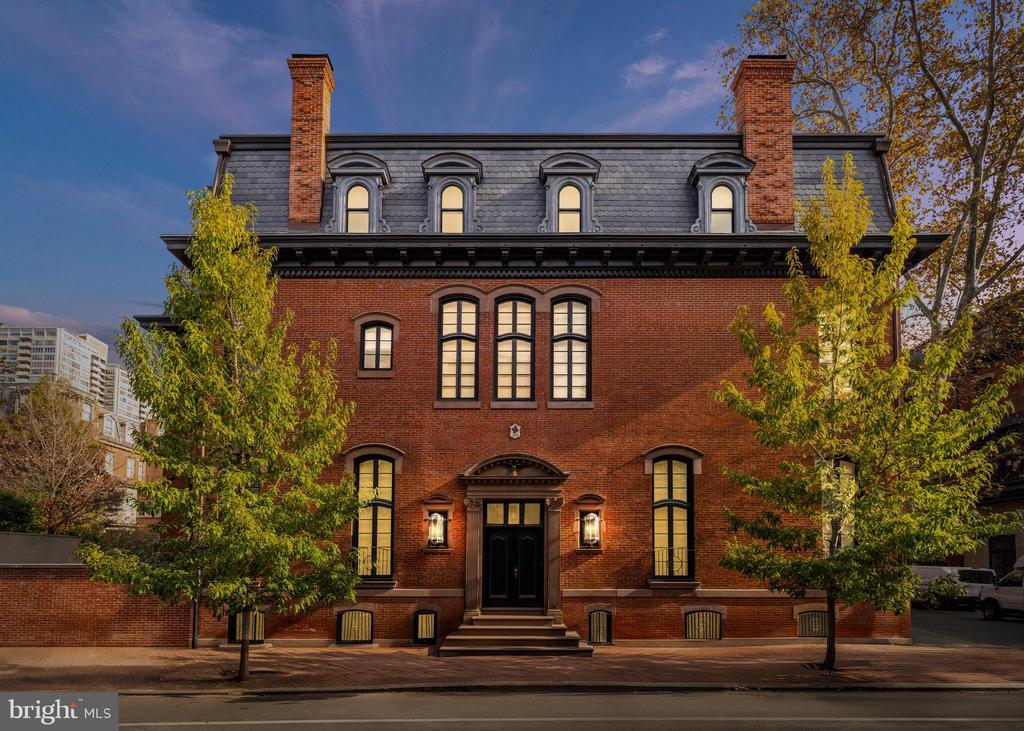 On the skylit top floor, two secondary suits and a large den, also ensuite, all include glamourous designer finishes and ensuite spa bathrooms, while rows of additional closets and a laundry room add convenience. Outside, a stunning brick faade with stone details, a mansard roof and dormer windows deliver curb appeal while the fenced courtyard is perfect for al fresco entertaining or off-street parking for one vehicle. From this outstanding Rittenhouse location, you're surrounded by the neighborhood’s centerpiece park and renowned local dining, with Philadelphia's best historic site, museums and amenities all within easy reach.
