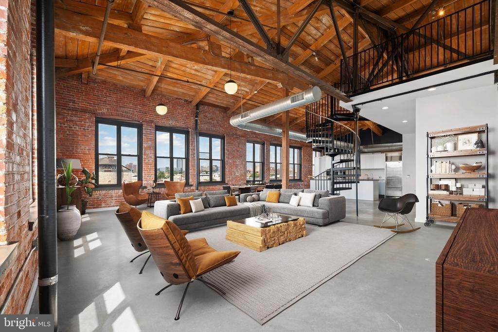 Welcome to a truly unique living experience in the heart of Northern Liberties! This rarely available, corner penthouse loft, with parking, in the historic Cigar Factory is a masterpiece of industrial elegance, combining modern luxury with timeless architectural charm. You'll fall in love with all 2,470 sq ft of open, sun-drenched space that used to be home to a former 76er! This 2-bedroom, 2-bathroom loft features exposed timber, steel, and brick construction, concrete and bamboo flooring, and stunning city views from a wall of windows that wrap around the unit.