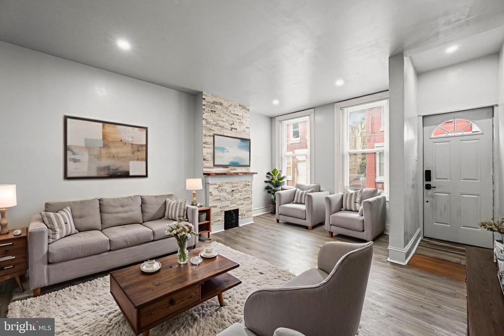 Welcome to 1232 W Sergeant Street, a beautifully updated home in the heart of Philadelphia offering style, space, and functionality. Step inside to find fresh paint and brand-new luxury plank flooring that flows through the open-concept living and dining areas. Bathed in natural light and enhanced by recessed lighting, the space feels bright and inviting. A stone-accented faux fireplace with a wood mantle adds a warm, cozy focal point. The modern kitchen is outfitted with gray shaker cabinets, sleek countertops, a stylish backsplash, and stainless-steel appliances including a range, hood, and refrigerator. Upstairs, you’ll discover a spacious primary bedroom, two additional bedrooms, and a fully renovated bathroom with designer finishes. The finished basement offers additional living space, a laundry area, and a convenient half bath, perfect for a home office, playroom, or guest retreat. Out back, the fenced yard provides the perfect outdoor space to relax, grill, or entertain. Don’t miss your chance to own this move-in-ready gem at 1232 W Sergeant Street, a perfect blend of modern upgrades and classic charm.
