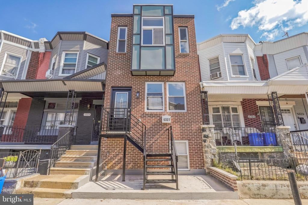 Brand-new construction at 5327 Chancellor Street in the Walnut Hill section of Philadelphia, offering 4 bedrooms, 3 bathrooms, and approximately 1,800 square feet of thoughtfully designed living space. Built from the ground up, this home combines modern architecture with the latest in comfort, efficiency, and style. The open main level welcomes you with a spacious living and dining area featuring recessed lighting, gleaming hardwood floors, and a striking open-riser staircase that adds a sleek, contemporary edge. The gourmet kitchen is a centerpiece, boasting white shaker cabinetry, quartz countertops, stainless steel appliances, a center island with gas cooktop, and a stylish glass subway tile backsplash. Double French doors open to a private, fenced rear patio—ideal for entertaining, dining al fresco, or enjoying a quiet evening outdoors.