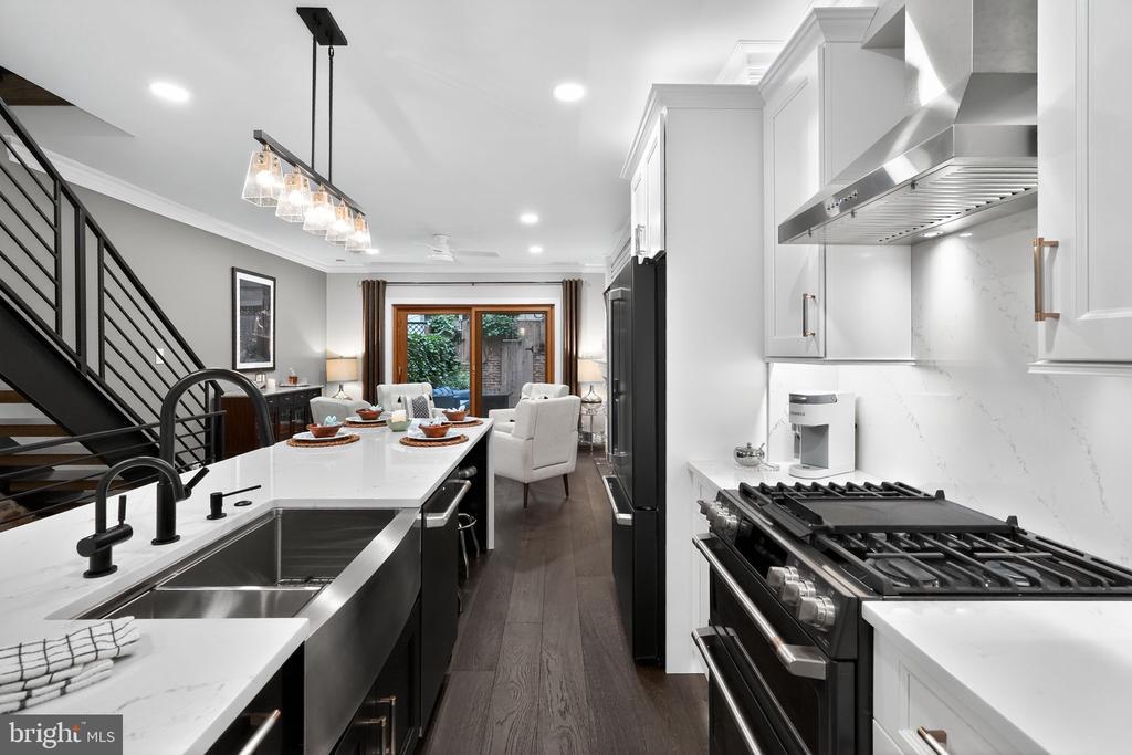 Featuring 3 bedrooms plus a den/office, 3 spa-inspired bathrooms, and a fully finished basement. This home blends timeless charm with modern luxury. The open-concept main floor showcases solid oak hardwood floors, high ceilings, crown molding and recessed lighting throughout. The chef's kitchen has a Cambria quartz waterfall island, countertops and seamless backsplash with solid wood cabinets and upgraded GE Cafe matte black appliances. Exposed brick walls, a gas fireplace with marble thresholds, and oversized glass doors extend the living space to a private walled garden and patio-perfect for entertaining or unwinding. Upstairs, two generous bedrooms feature custom closet systems, There is Juliet balcony access from the second floor primary bedroom with a primary bathroom that is fully tiled with Carrara marble and absolute black granite floor. The top floor is dedicated to a recently renovated guest suite with heated tile floors, glass-enclosed shower, built-in storage, and an adjoining den/home office designed for today's lifestyle. The fully finished basement provides an additional media/family room, multiple storage closets, and updated mechanicals, creating both functionality and flexibility. Nestled in the coveted McCall Elementary School catchment, this home offers a Walk Score of 99, placing Center City's finest restaurants, cafés, shopping, nightlife, and cultural destinations just steps away.