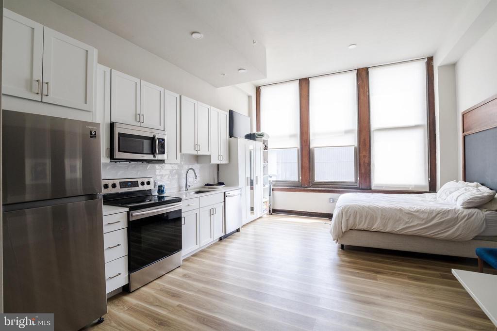 *Available Now!* Don't miss this breathtaking studio, 1 bathroom with a historically preserved chalkboard! This space has everything: hardwood floors, oversized windows, mini split system heating/cooling, recessed lighting, and a washer/dryer in unit! The kitchen has white cabinets with sleek hardware against textured white subway tile back splash, quartz counter top, a garbage disposal and stainless steel dishwasher, microwave, refrigerator and electric range. The bathroom features a vanity with the same counter top that matches the kitchen and shower/tub with a glass door. The Walter George Smith Public School, listed on the National Register of Historic Places, has undergone an amazing transformation to bring you these brand new luxury apartments! Each unit features high end finishes while preserving it's historic character such as the chalkboards, original trim and closets, and overall unique floor plan. All tenants will have access to the two outdoor spaces (over half an acre combined!) on ground floor and mezzanine patios, and roof deck with stellar skyline views! Located at 19th and Wharton in Point Breeze, you'll be minutes from the OCF Coffee House, American Sardine Bar, Graduate Hospital, East Passyunk and MORE! Lease Terms: Generally, 1st month, and 1 month security deposit due at, or prior to, lease signing. Other terms may be required by Landlord such as last month’s rent upfront. $65 application fee per applicant. Residents Responsible for Electric Usage & Flat Monthly Water/AC/Heat fee of $100 Additional fees or requirements may be applicable for units with Homeowners or Condo Associations. Landlord Requirements: Applicants to make 3x the monthly rent in verifiable gross income, credit history to be considered, no evictions within the past 5 years, and must have a verifiable rental history with on-time rental payments. Exceptions to this criteria may exist under the law and will be considered. Cosigners will be considered. *Price reflects the net effective rent when a 2-week credit is applied at $1,225/mo. *Sorry, no cats, 1 dog <45 lbs permitted with owner approval + $50/mo pet fee