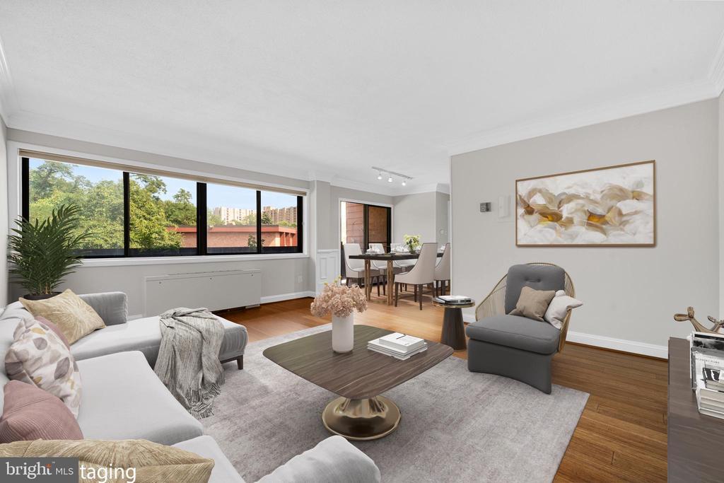 ***NEW UPDATED PRICE*** FREE 1-year home warranty fully paid by Seller with a full price offer! Bright and inviting top-floor unit! ALL UTILITIES COVERED WITH CONDO FEE! Beautifully maintained featuring hardwood floors throughout, crown molding, and wainscoting in the dining area. The kitchen has been tastefully updated with granite flooring and a tiled backsplash, while the bathroom includes Kohler fixtures and modern finishes. The spacious bedroom offers a walk-in closet with custom California shelving, and there's a second walk-in closet in the unit, plus additional storage in the building. Enjoy charming details like plantation shutters in the living room, a ceiling fan and an overall warm, stylish feel. The unit overlooks a scenic trail, ensuring long-term privacy with no future development directly in front. Community amenities include a swimming pool, newly renovated laundry room, on-site maintenance. Located in a quiet neighborhood near Shirlington's vibrant dining and theater district, this home offers easy access to I-395, the Pentagon, and Alexandria. This is a fantastic opportunity to own in a well-cared-for community with unbeatable convenience! RECENT UPDATES: Entire home freshly painted including ceilings and all trim/wainscoting . Recently installed heating/cooling units in both the living room and bedroom.